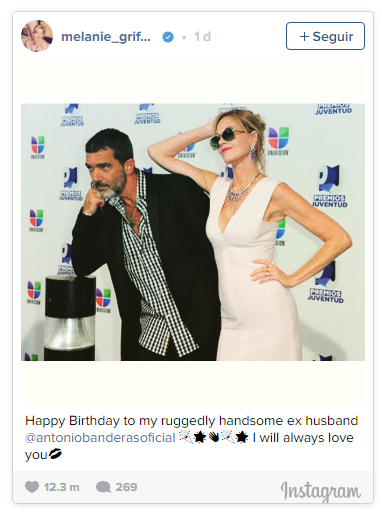 "Feliz aniversário para o meu bonito ex-marido. Vou amar-te sempre", escreveu Melanie na legenda de uma imagem onde aparece ao lado do ator.